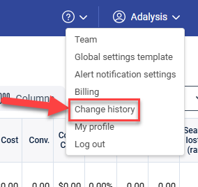 *Note: The Adalysis change history tracks changes made within Adalysis only, and hence will not include changes made directly within the engine's web interface.*