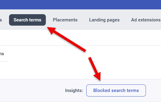 You can access the list of search terms blocked in the last 90 days using the below tool: